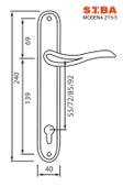 Дверна ручка на звичайній штанзі SIBA сумісна з будь-якими замками стандарту 55, 72, 85 або 92 мм. (Відстань між центром ручки та циліндра). У комплекті з затискними гвинтами.