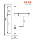 Дверна ручка на загальній планці SIBA сумісна з замками стандарту 85 мм. (Відстань між центром ручки та циліндра). Комплектується стяжними гвинтами.