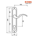 Дверна ручка на загальній планці SIBA сумісна з замками стандарту 85 мм. (Відстань між центром ручки та циліндра). Комплектується стяжними гвинтами.