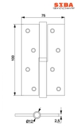 SIBA Завіса сталева 100 мм 1BB з декором, полірована латунь— це надійна та естетично приваблива дверна петля, призначена для встановлення на дерев'яні двері з плоским торцем. Оснащена одним кульковим підшипником (1BB) для плавного та безшумного ходу дверей.