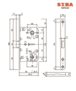 Внутрішній механізм SIBA 9650 WC, оснащений реверсивною безшумною засувкою і має функцію блокування (блокування закриття), стандарт замка 96 мм, ширина торцевої планки 18 мм і можливість вибору.